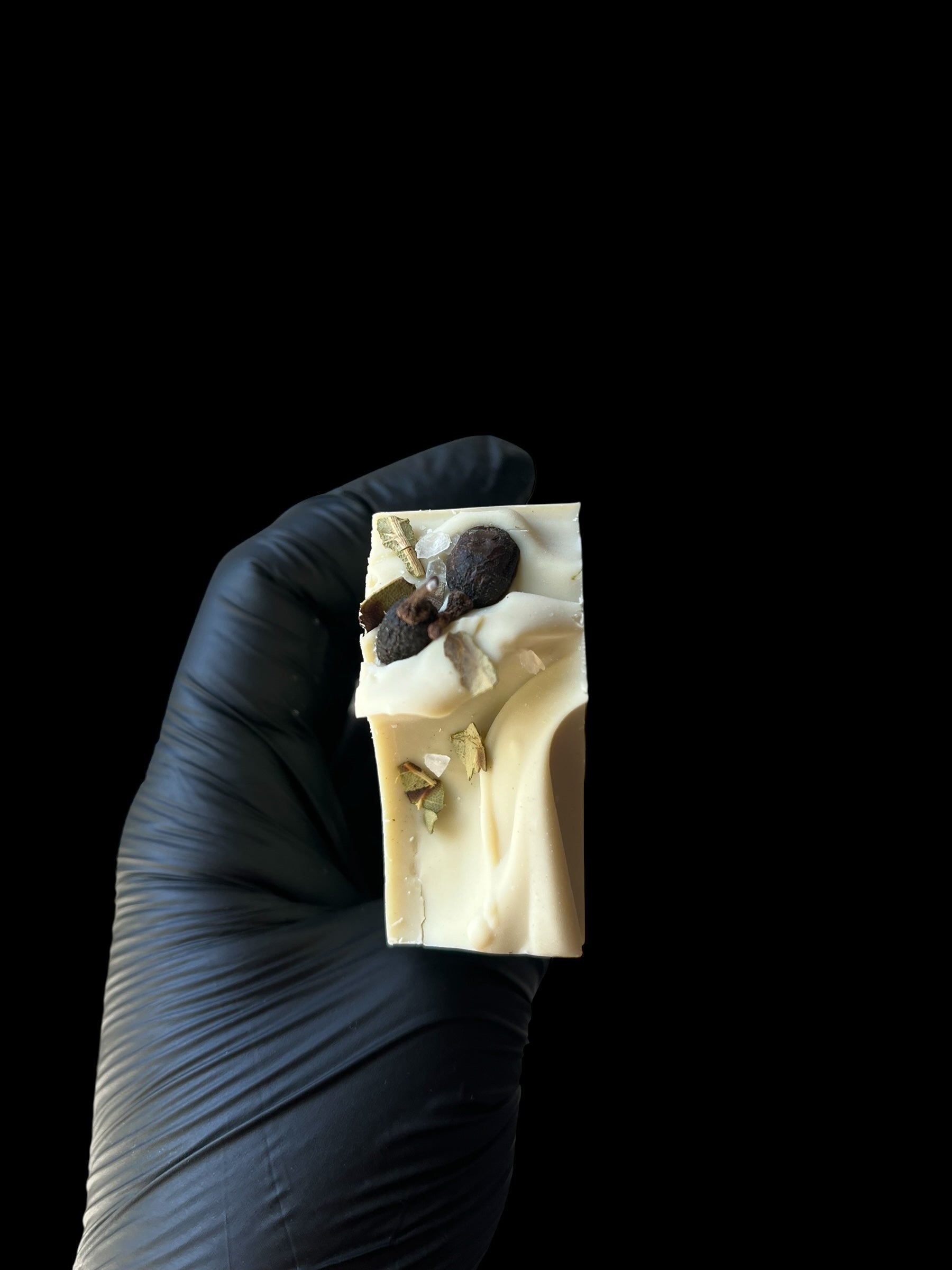Till skillnad från en traditionell aleppotvål innehåller denna, som nästan alla våra övriga tvålar, även lera och salt för att ge en extra härlig tvättupplevelse. Den är också dekorerad med riktiga ekologiska lagerbär och lagerblad.