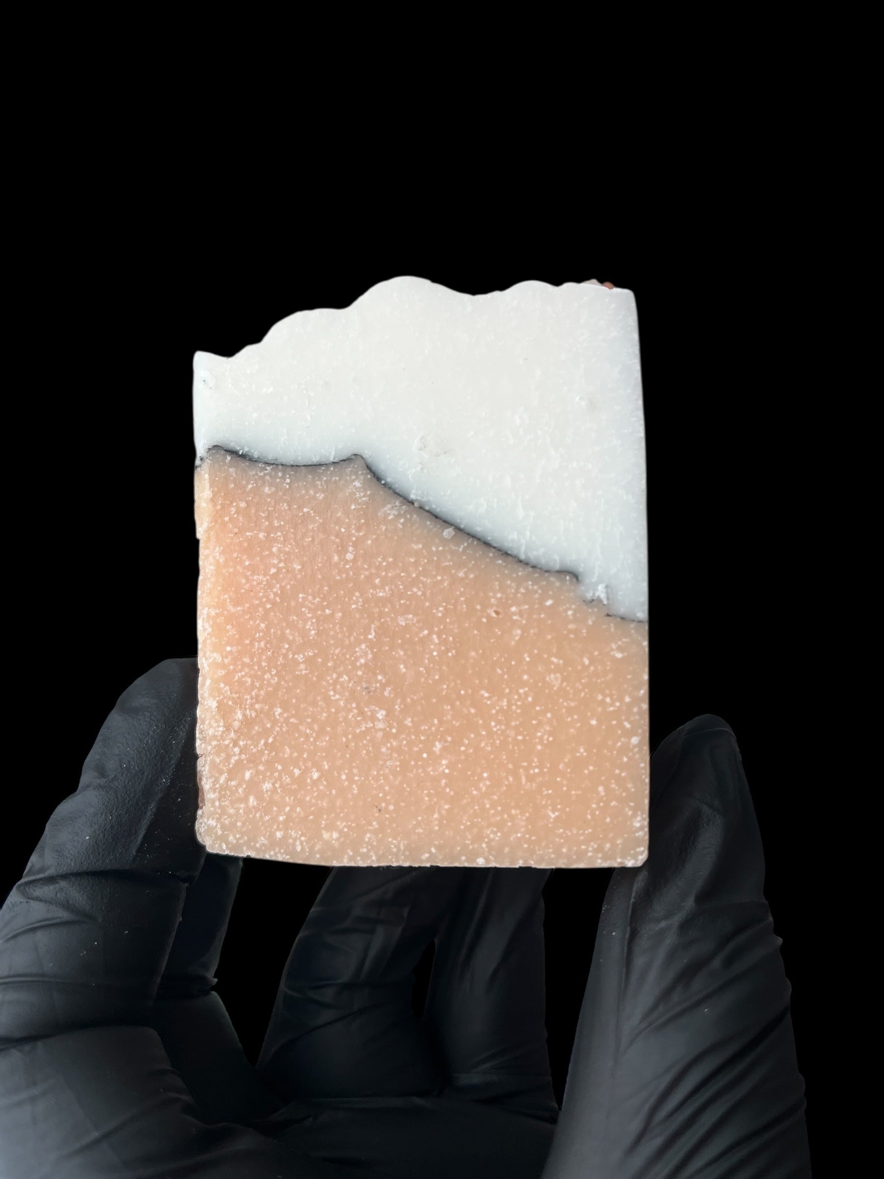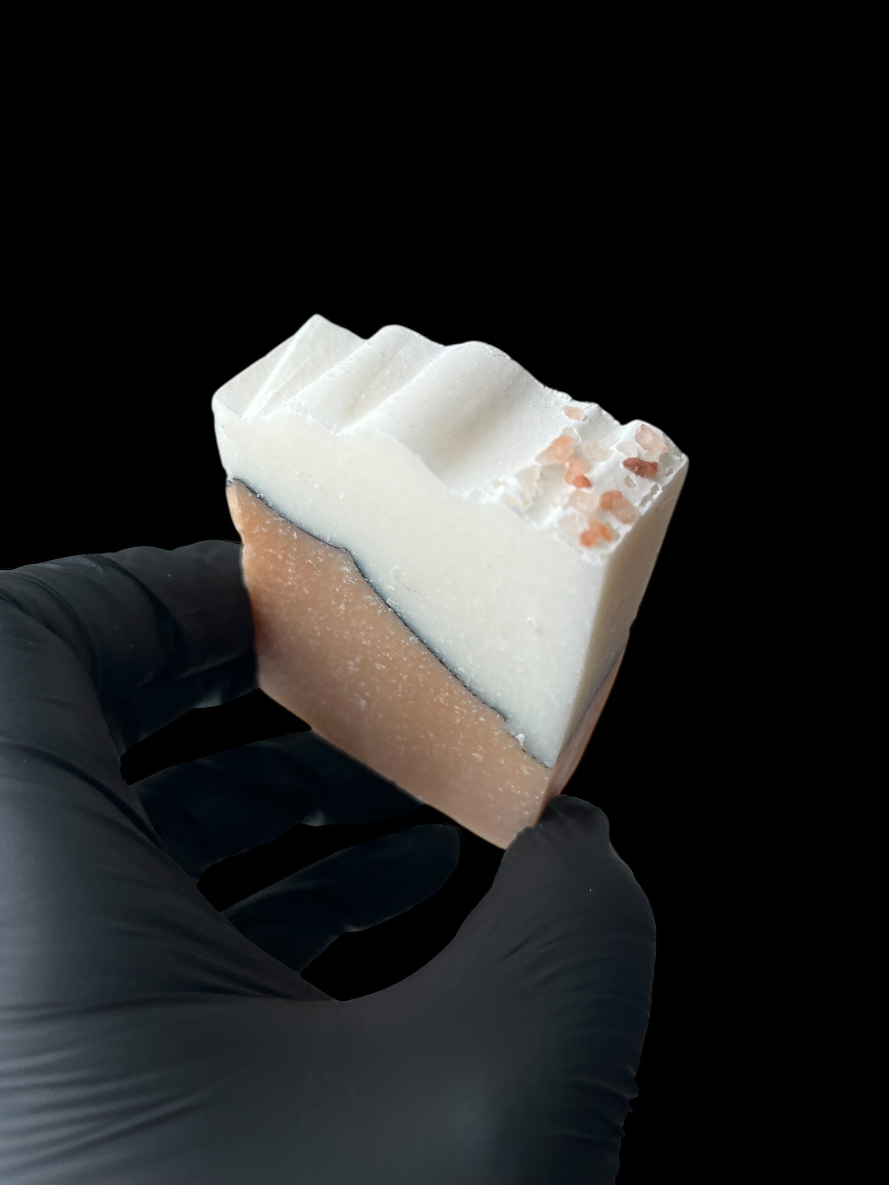 Diese Kreation hat einen milden Zitrusduft aus ätherischen Ölen von Litsea Cubeba und Vetivergras und die Farben stammen aus rosa Tonerde, Aktivkohle und Himalaya-Salz.