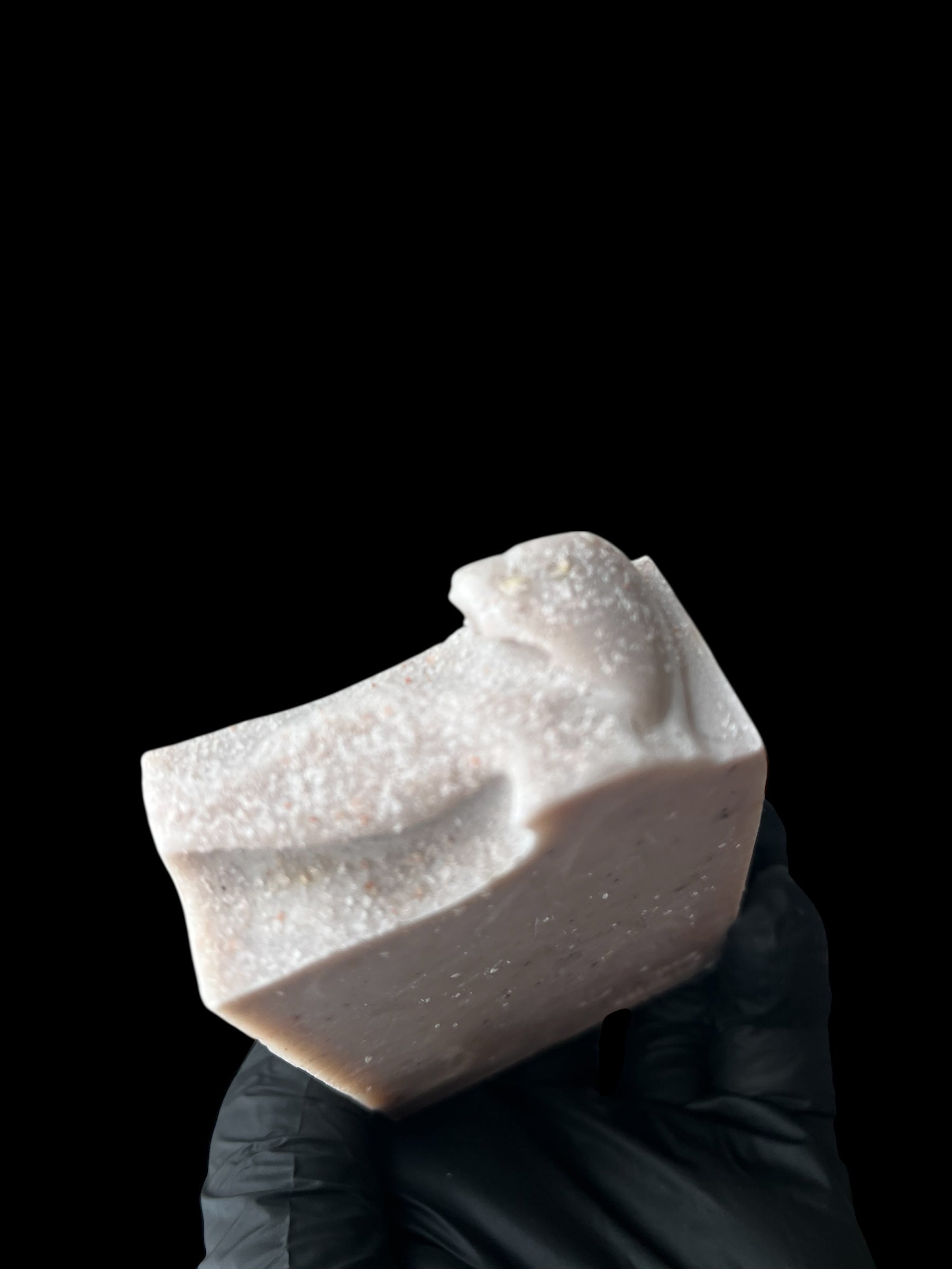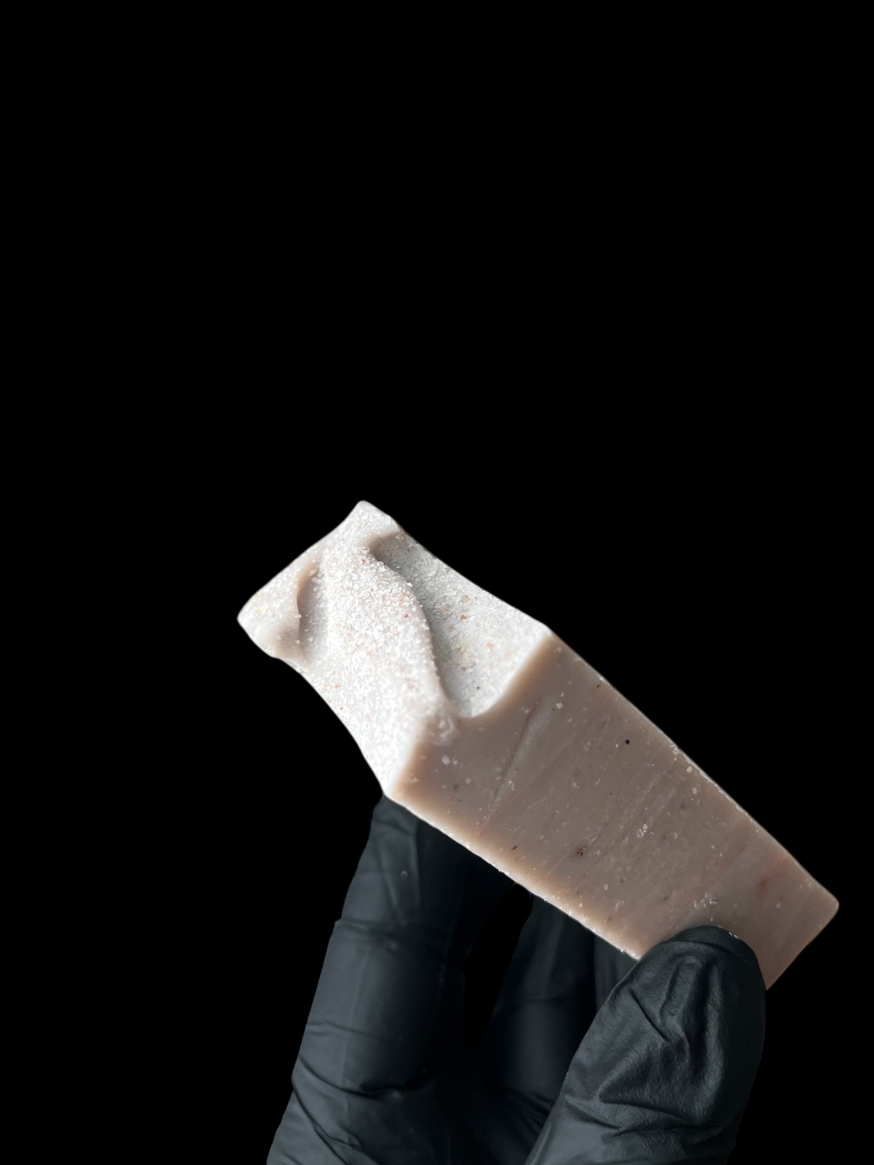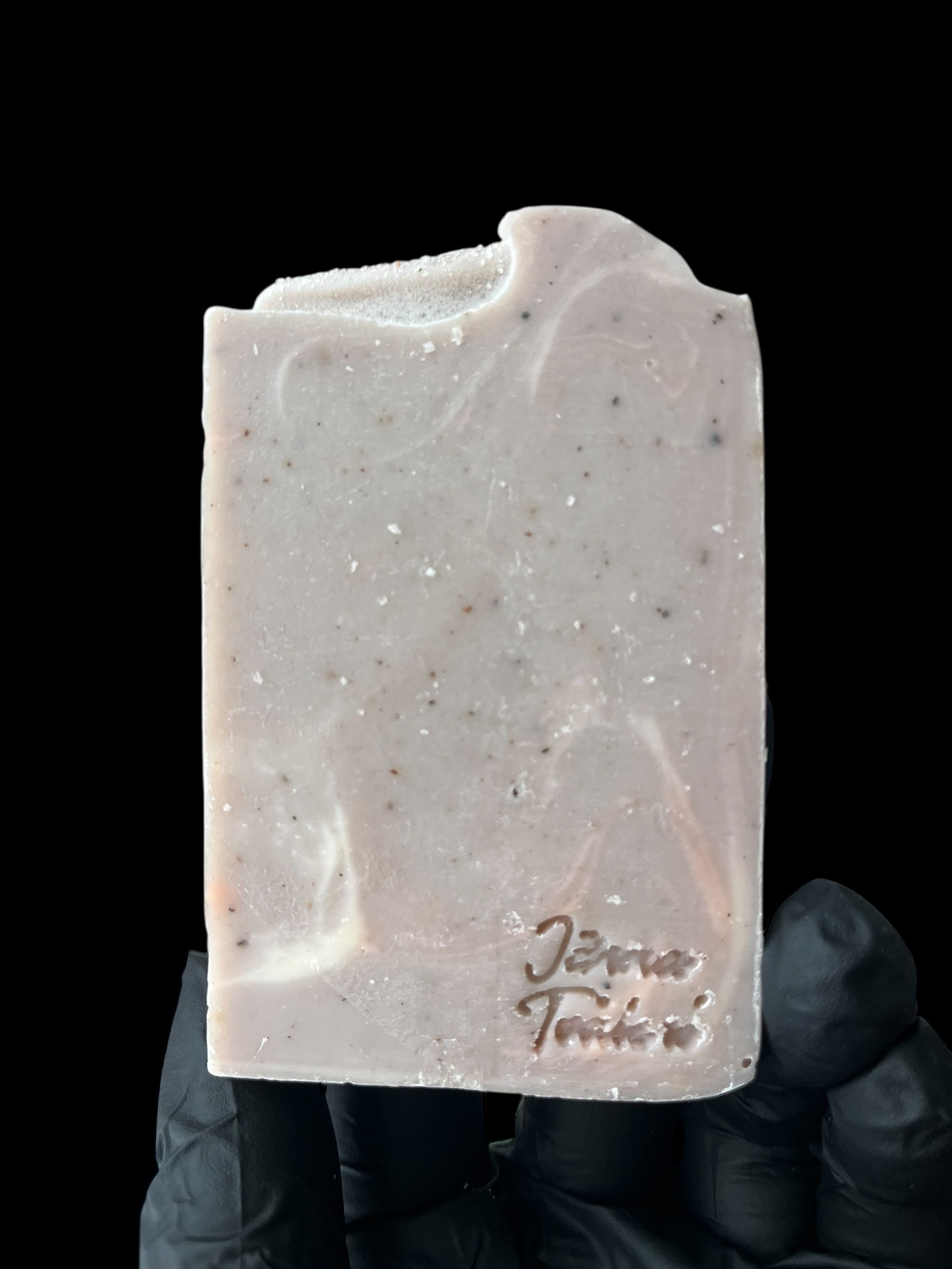Tvålbasen är välbalanserad och baseras på fetter från raps, kokos, shea och ricin, med en överfettning på 4%. Den passar därför bra för både ansikte, kropp och hår. Som alla våra tvålar innehåller även denna både salt och lera för en skön tvättupplevelse och en lite hårdare tvål.