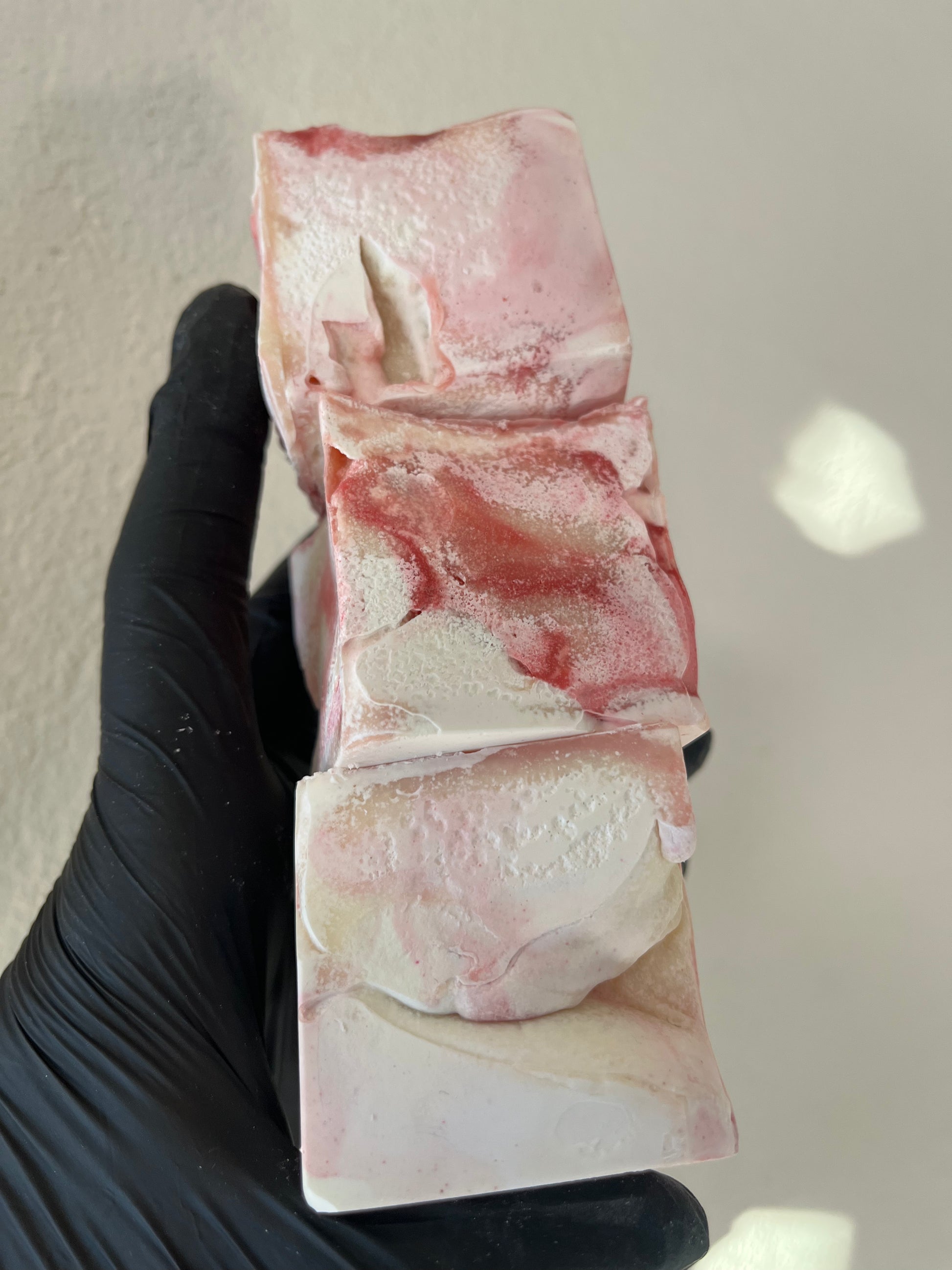Detta är en fast effektiv disktvål gjord på kokosolja. Polkadisk doftar milt av mint från eteriska olja. Den rosaröda färgen kommer från krapprot. Polkadisk kommer med ett presentband runt och en etikett med användningsinstruktioner.