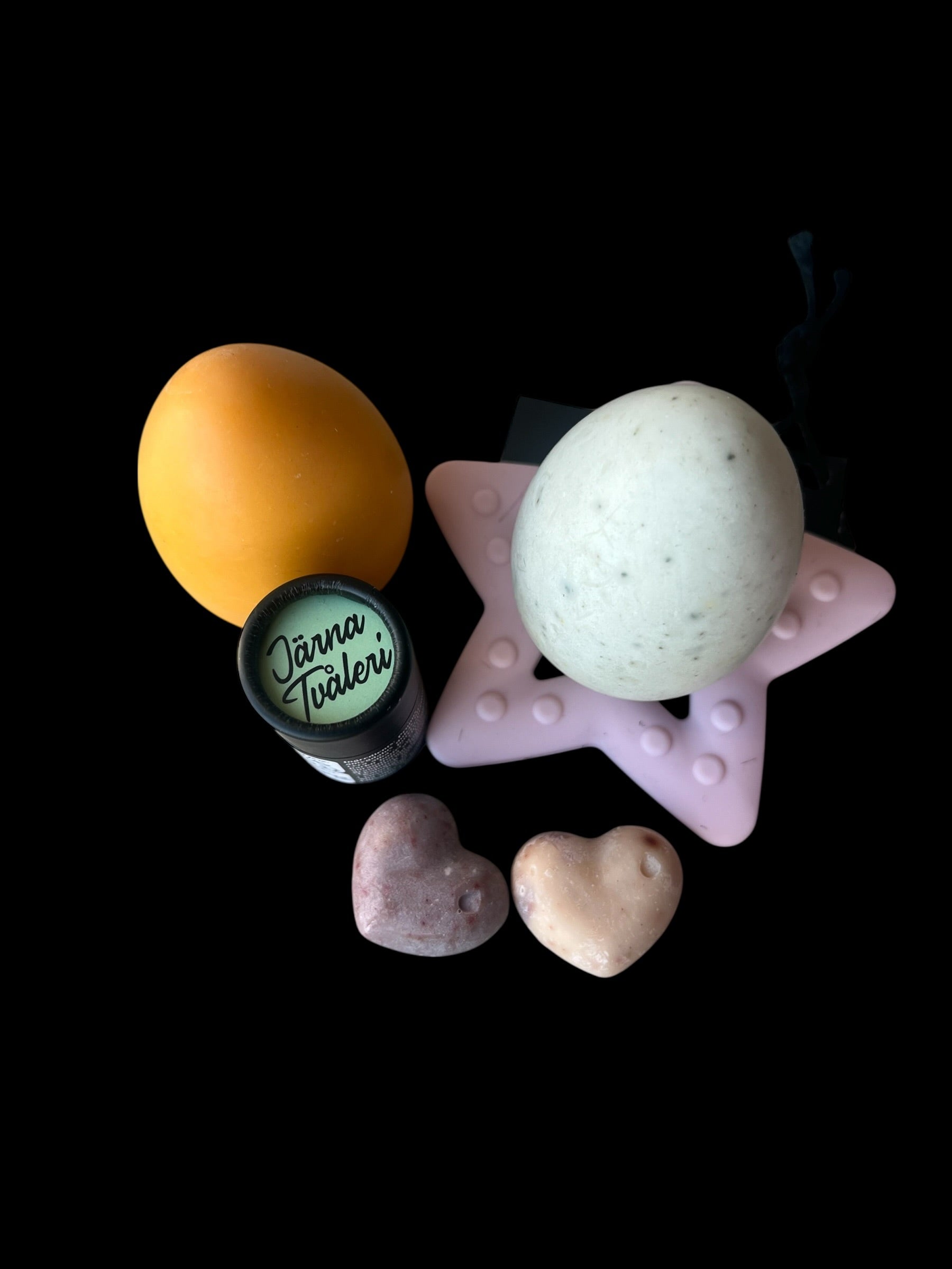 Presentlådan innehåller även ett passande silikonunderlägg i form av en rosa stjärna samt ett cerat med doft av Lime. De två medföljande hjärtana är båda prov på tvålen Skymningsljus.