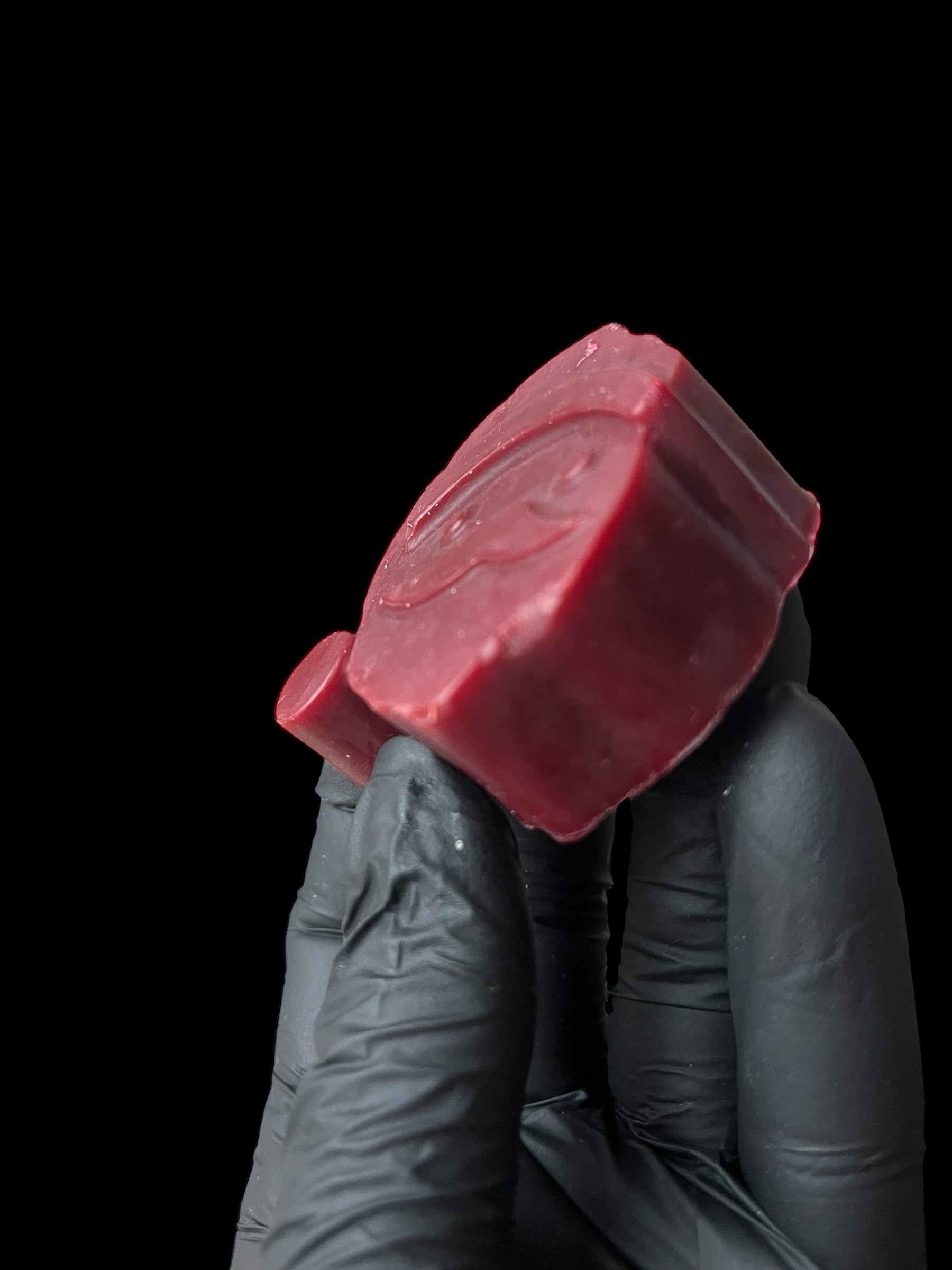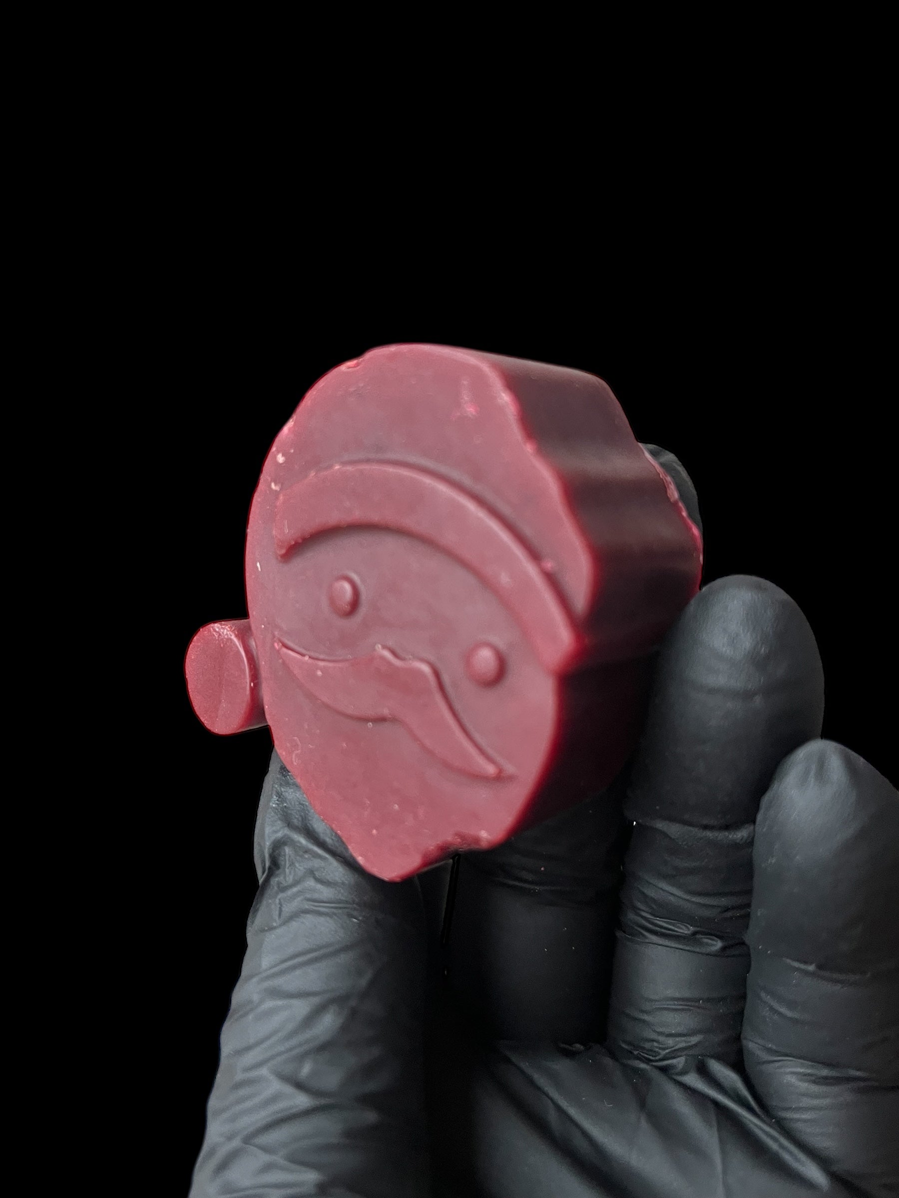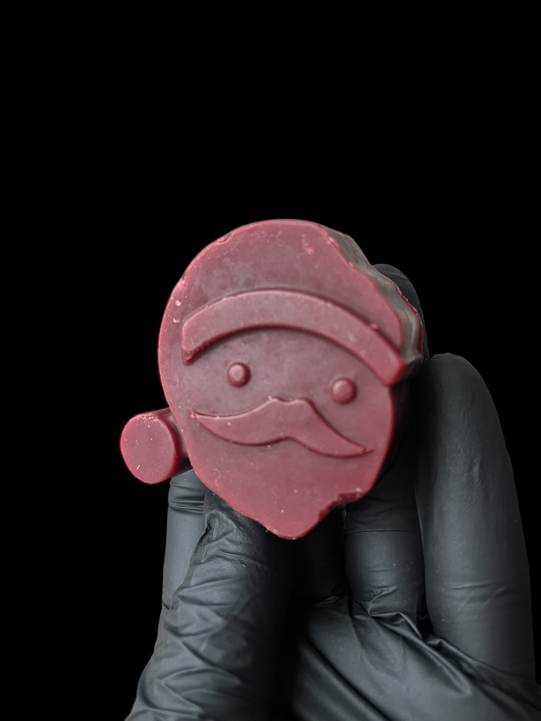 Detta är en slatt från tillverkningen av Julklapp som hällts i en tomteform, ca 45 gram.