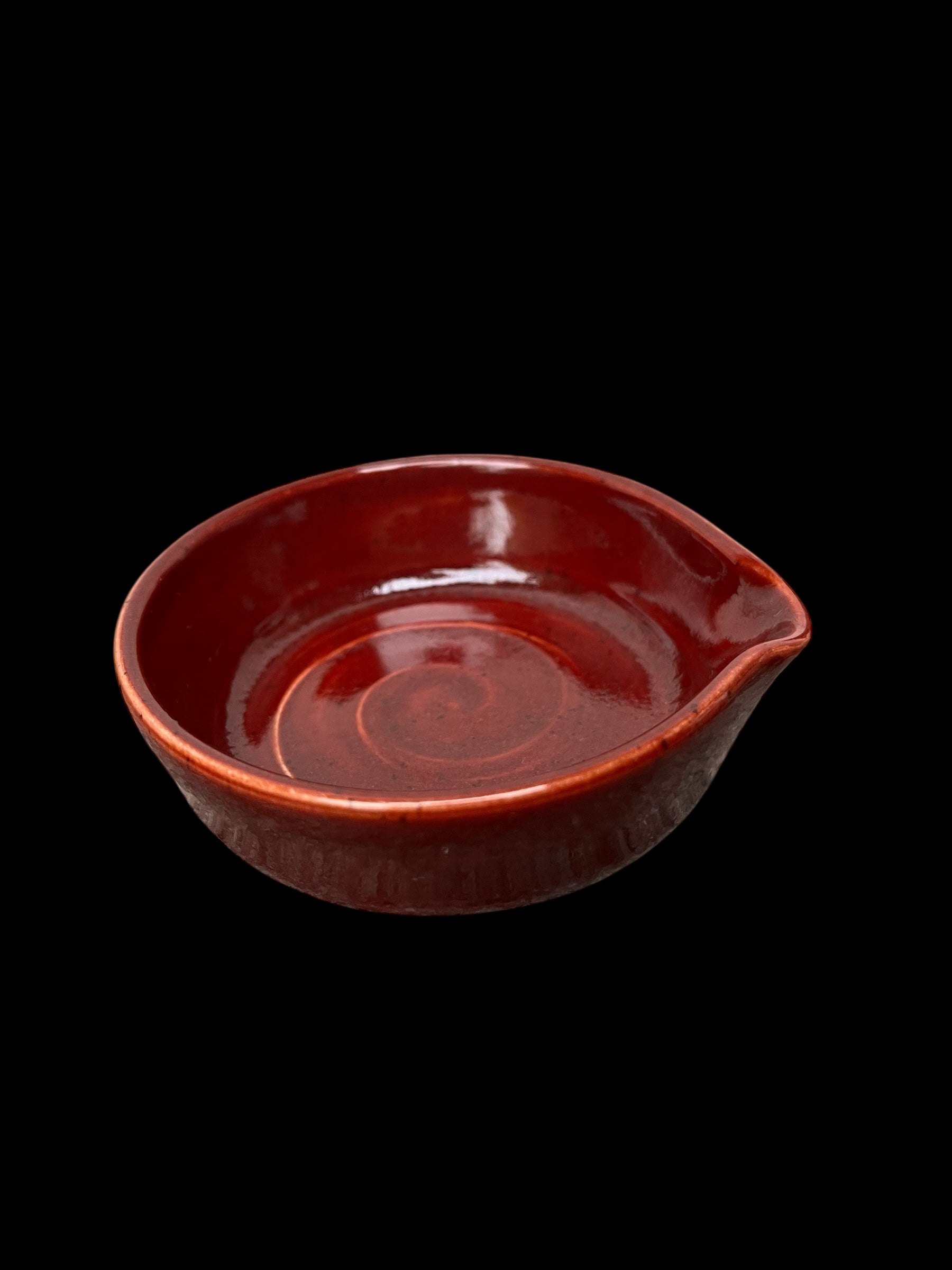 En nätt liten keramikskål att ha disktvålen i på diskbänken. Skålen står stadigt på diskbänken och överflödigt vatten kan hällas av ur en liten pip.