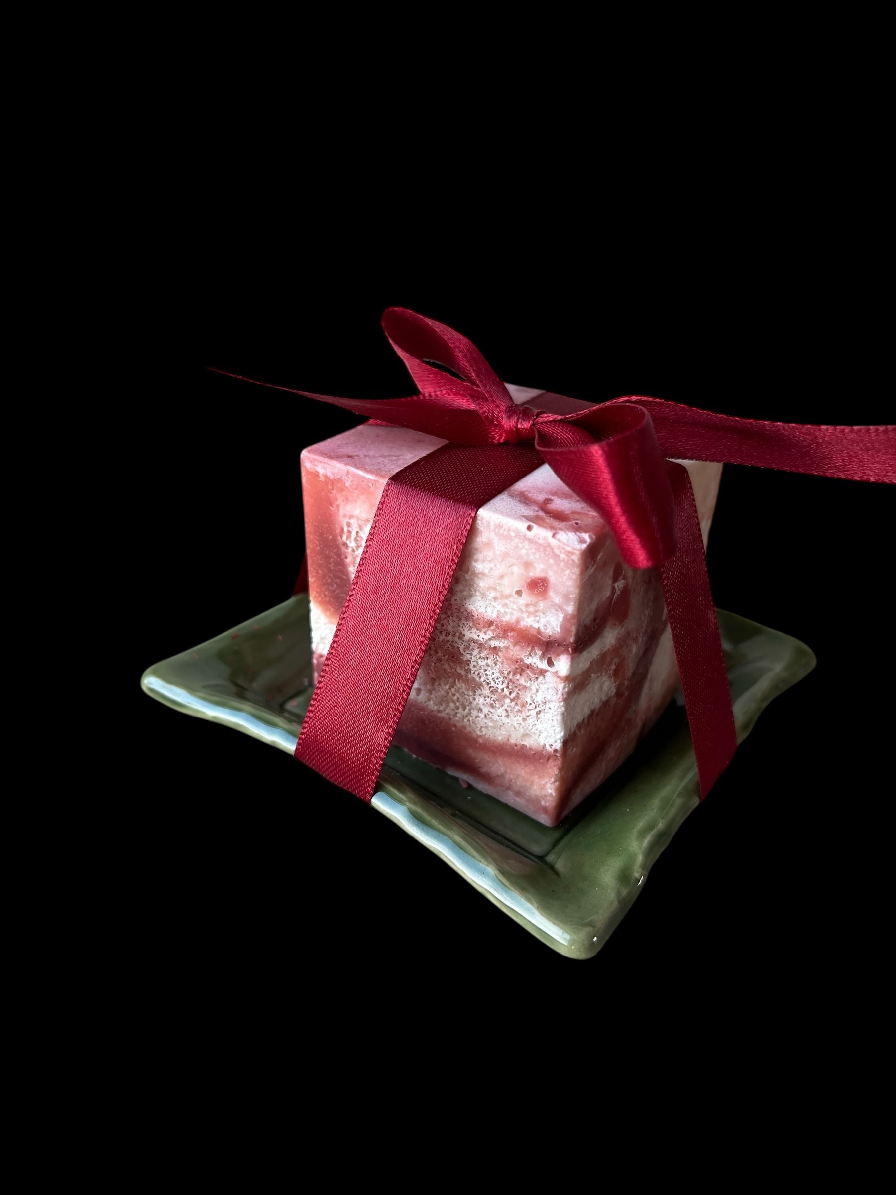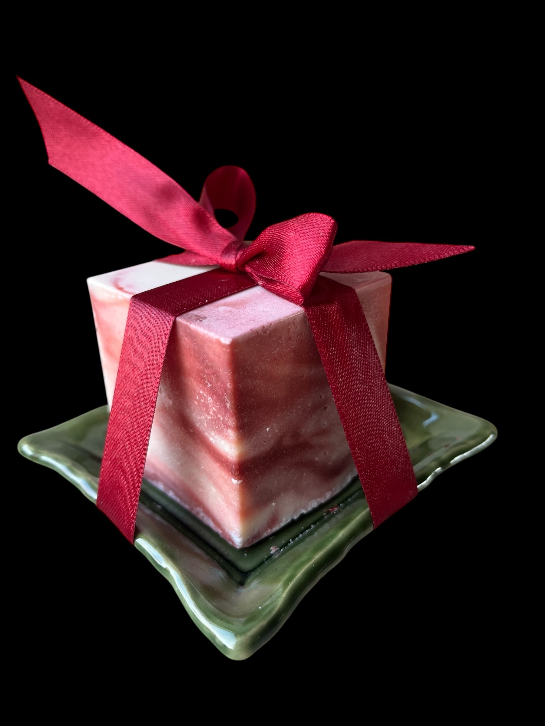 En fin liten julklapp - en Polkadisk med ett passande disktvålsskål. Kommer med rosett runt och etikett med instruktioner under.