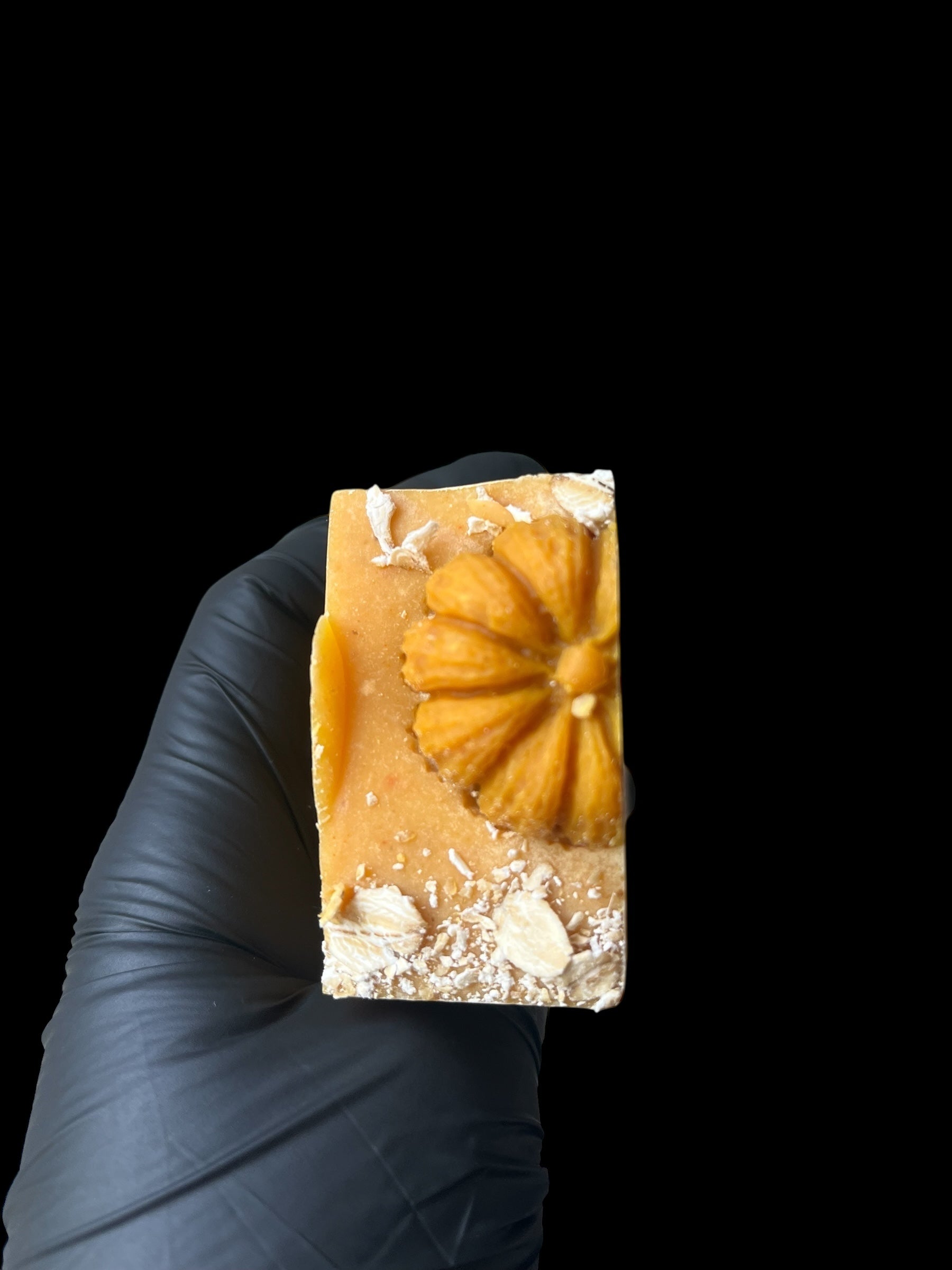 Pumpa är en extra fet tvål för höstig hy, med vårdande pumpapuré, gurkmeja och havre.